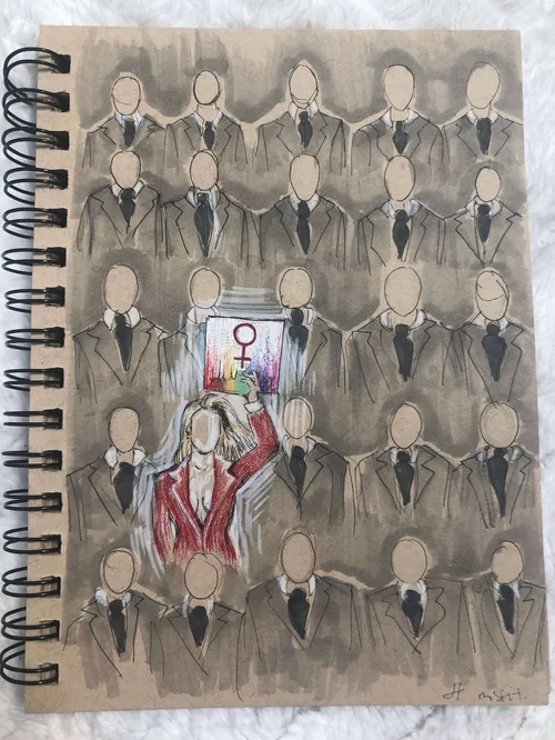 America is... choice. The way that I layer the canvases on top of one another mirrors the way that the United States government covers up realities for women in our country today. The growing control that the government is beginning to have over women’s bodies, sparks a fire within the roots of my work.